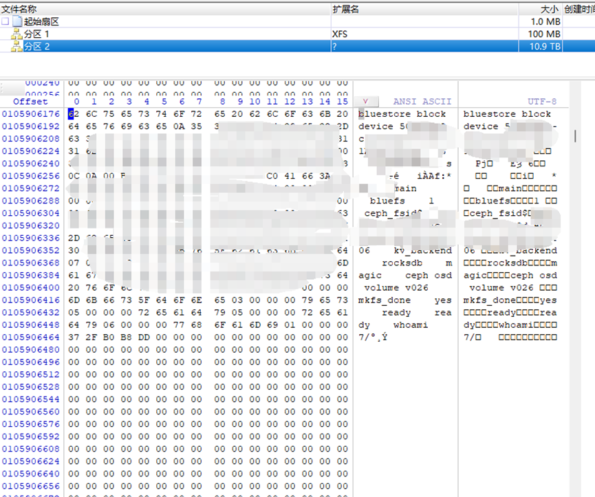 在工作站上使用winhex查看物理盘和闪存盘,发现底层为ceph分布式存储,其下层是基于bluestore的分布式结构,“上层”使用leveldb算法,“中间层”使用rocksdb运作。全局采用持久化的模式,算是一种标准化的新版ceph分布式存储系统。